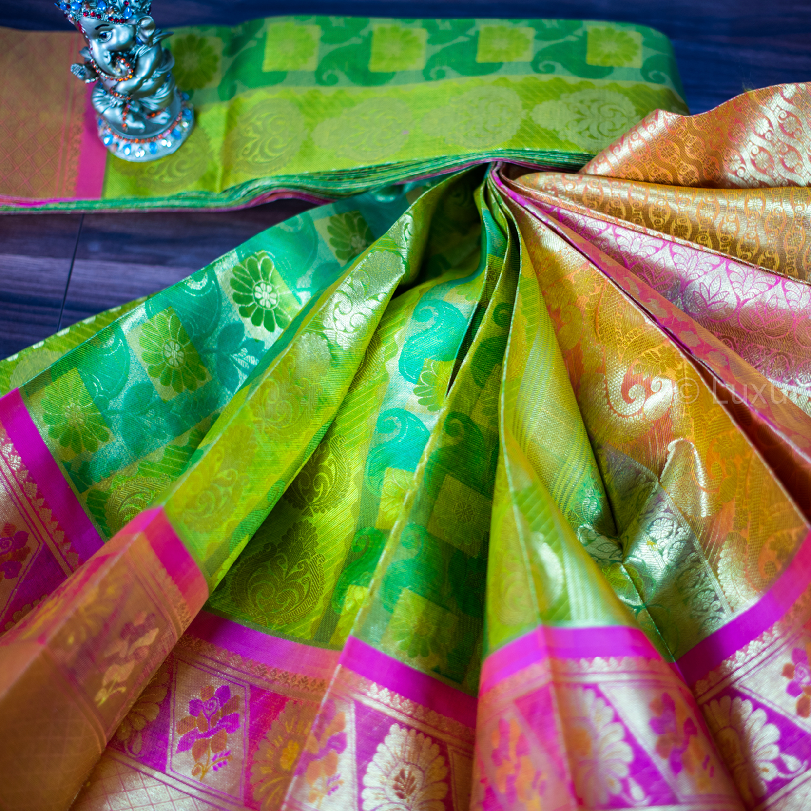 Kanchipuram Pure Pattu (Silk) Handloom Kai Korvai Bridal Wedding Saree